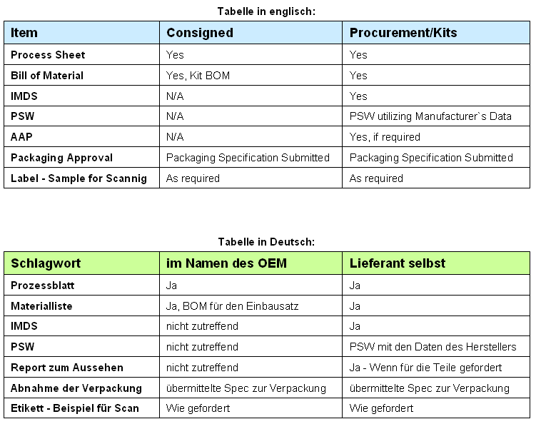 Wenden wir uns nun dem neuen Manual zu - und an dieser Stelle sei eine persönliche Anmerkung erlaubt: Ich bin immer noch entsetzt darüber, wie die AIAG es geschafft hat, auf insgesamt 70 Seiten so wenig tatsächlich neue Information zu verteilen. Das einzig wirklich Neue befindet sich auf den beiden Seiten 12 und 13. Auf Seite 12 finden sich die Definitionen der eingangs erwähnten Ersatzteile (Procured und Consigned Parts - halbe Seite), sowie eine Unterscheidungstabelle für diese beiden Arten (Rest der Seite).
