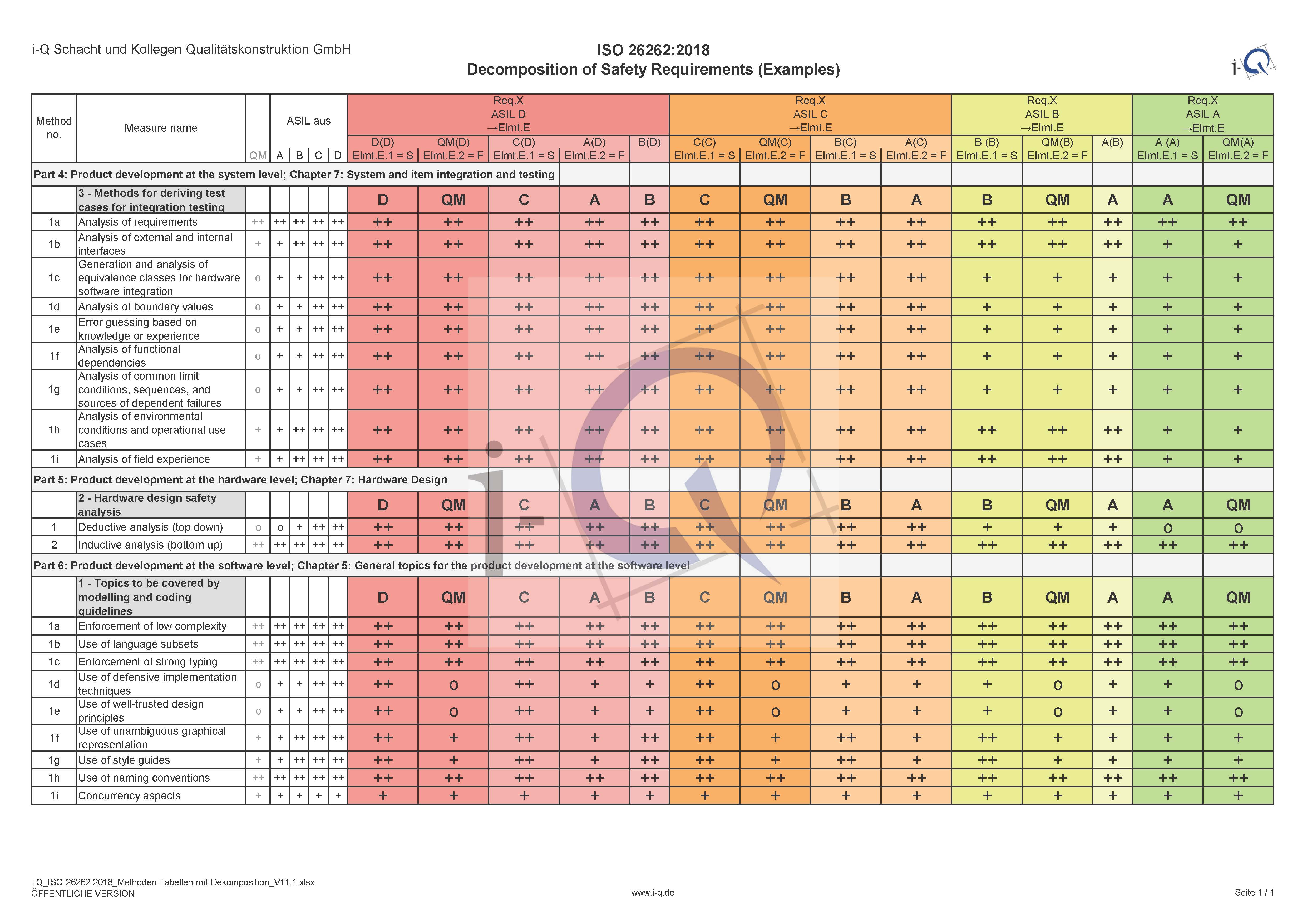 - "++" bedeutet, dass die Methode für das identifizierte ASIL sehr empfohlen wird;